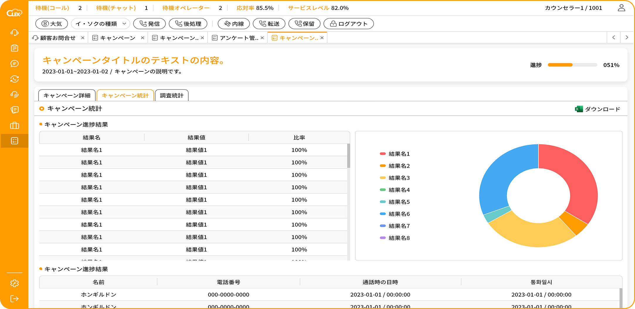 ※主な機能 PBX,CRM,IVR,通話録音、コールバック、 案件管理、統計/レポート